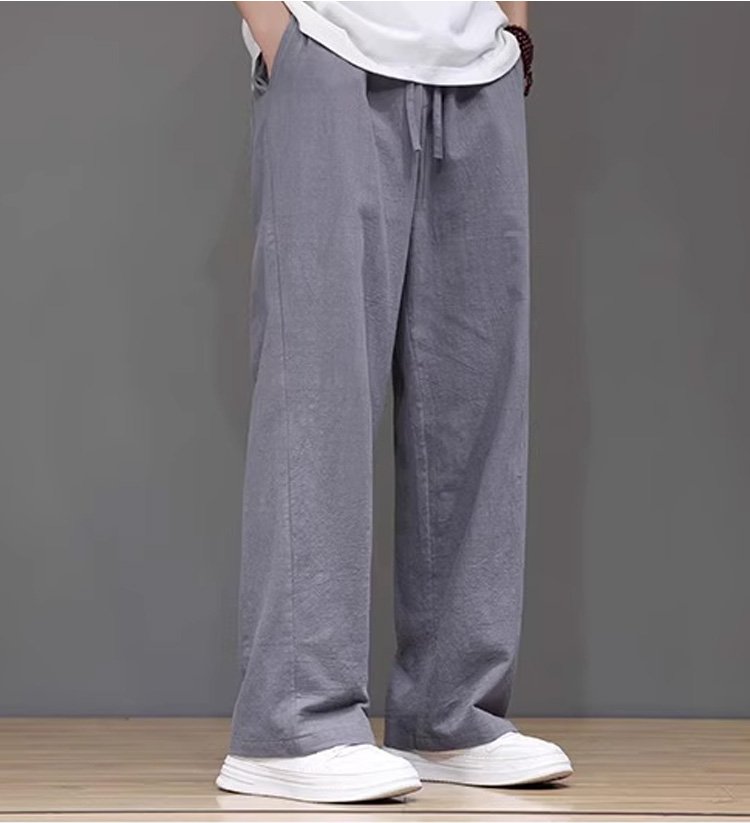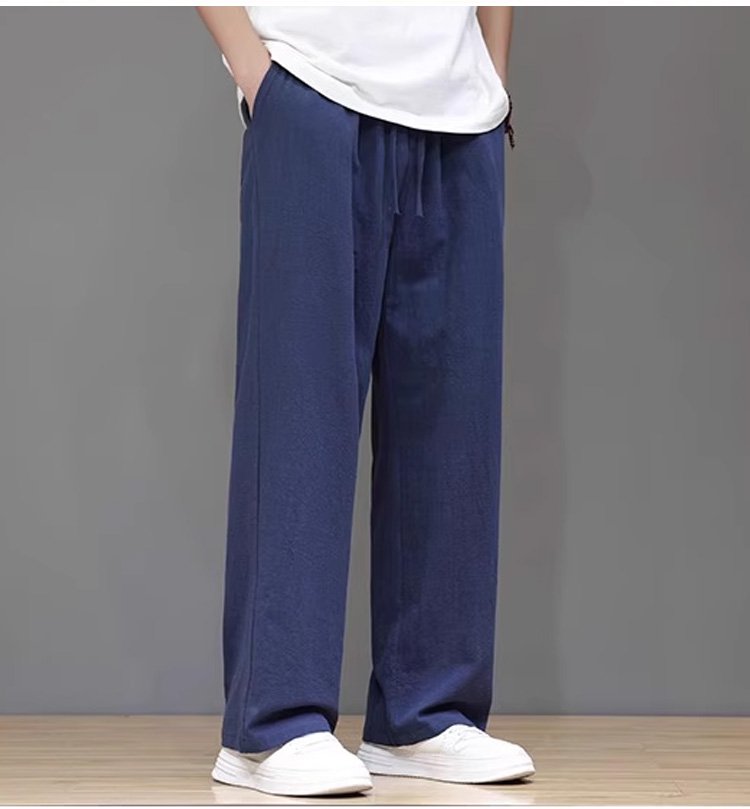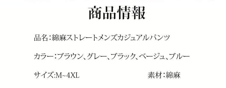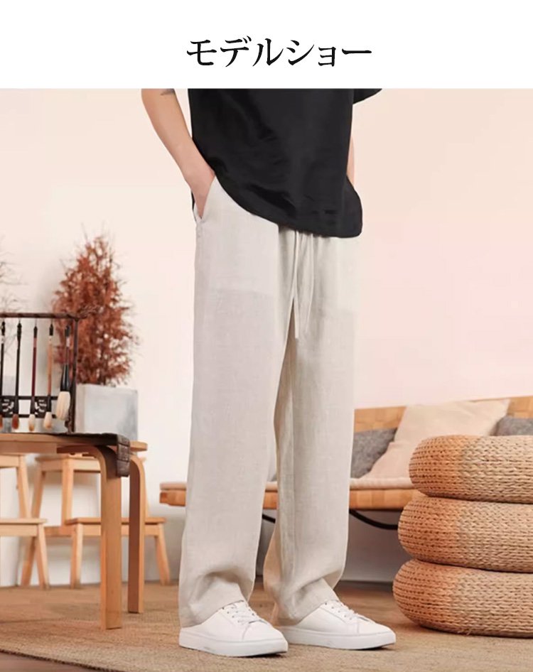 綿麻ストレートメンズカジュアルパンツ