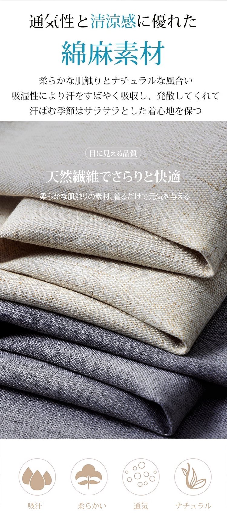 通気性抜群の綿麻パンツ生地アップ